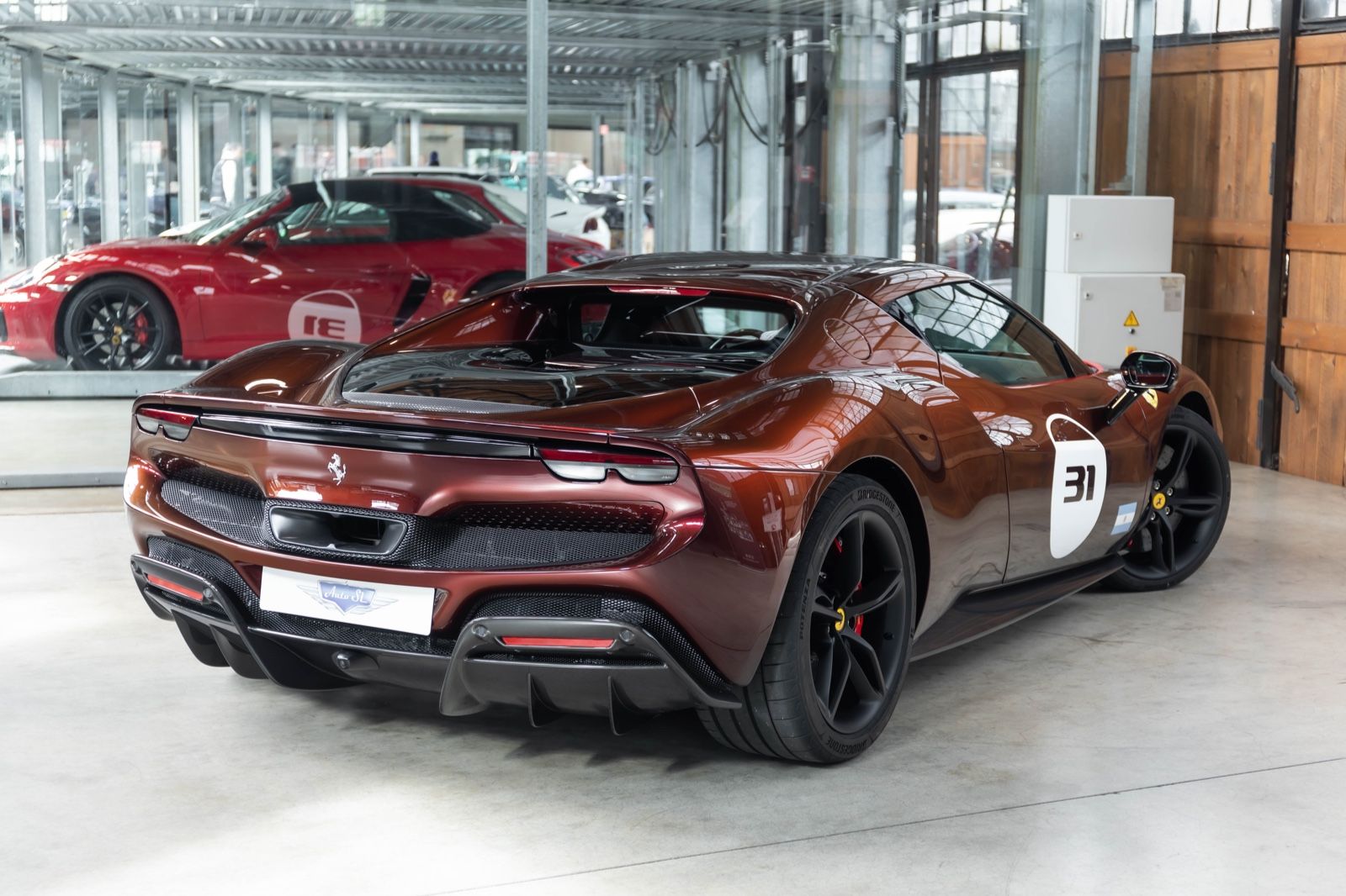 Seine Tailor Made Spezifikation umfasst spezielle grafische Details und die Rennnummer 31 sowie die Flagge von Argentinien. Aber damit ist es nicht getan, denn das Auto ist auch in einer seltenen Lackfarbe Rosso Taormina lackiert und kommt außerdem mit zahlreichen Optionen und Extras, was es insgesamt zu einem hervorragenden Beispiel für den topmodernen Ferrari 296 GTB macht.